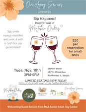Our Aging Services is rolling out the red carpet for Sip Happens: Happy Hour of Mistaken Orders™ on Tuesday, November 18th, and you’re invited to be part of the fun!